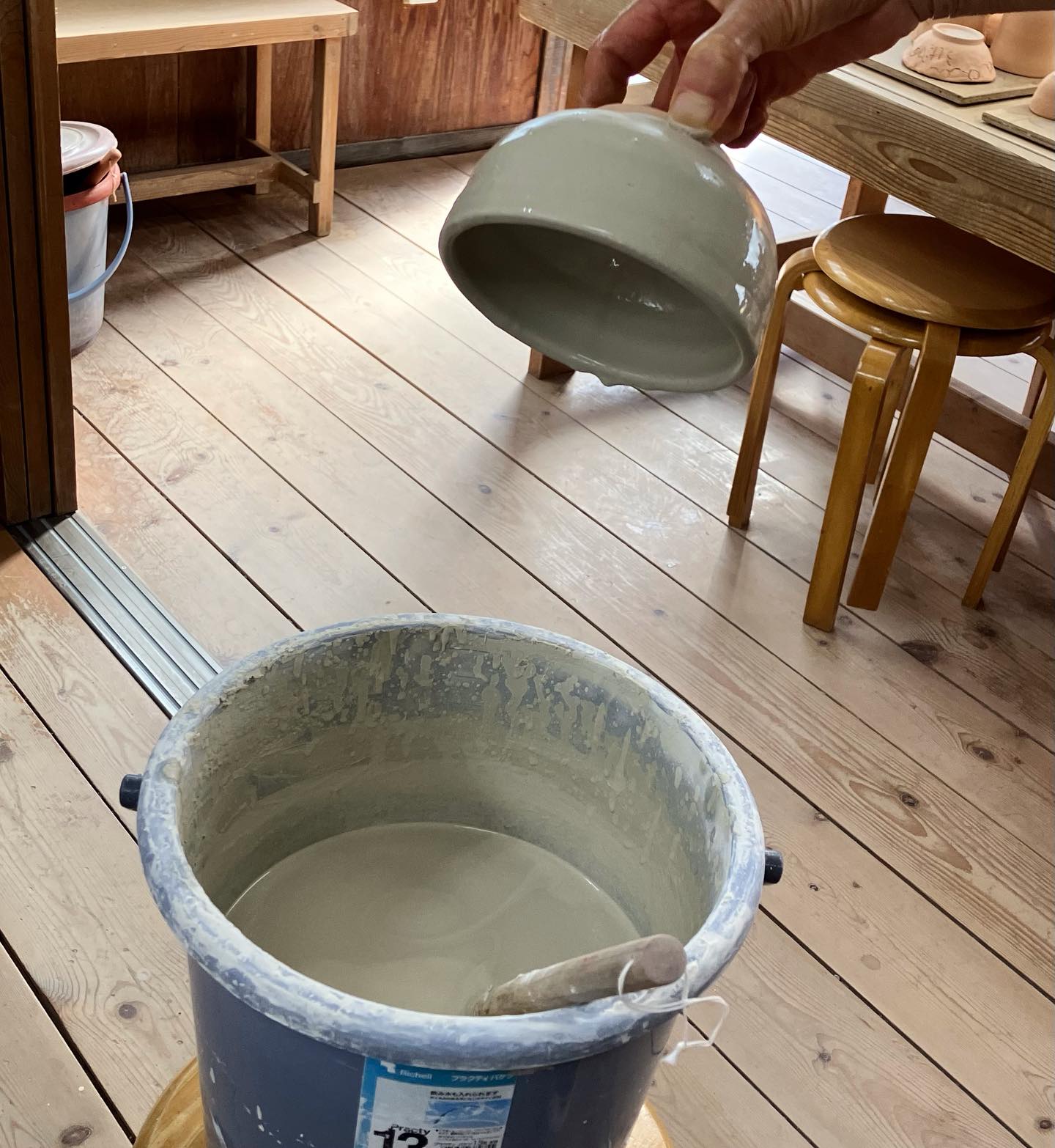 お店では本焼きに向けて、釉掛けや窯詰めの準備を進めています!
