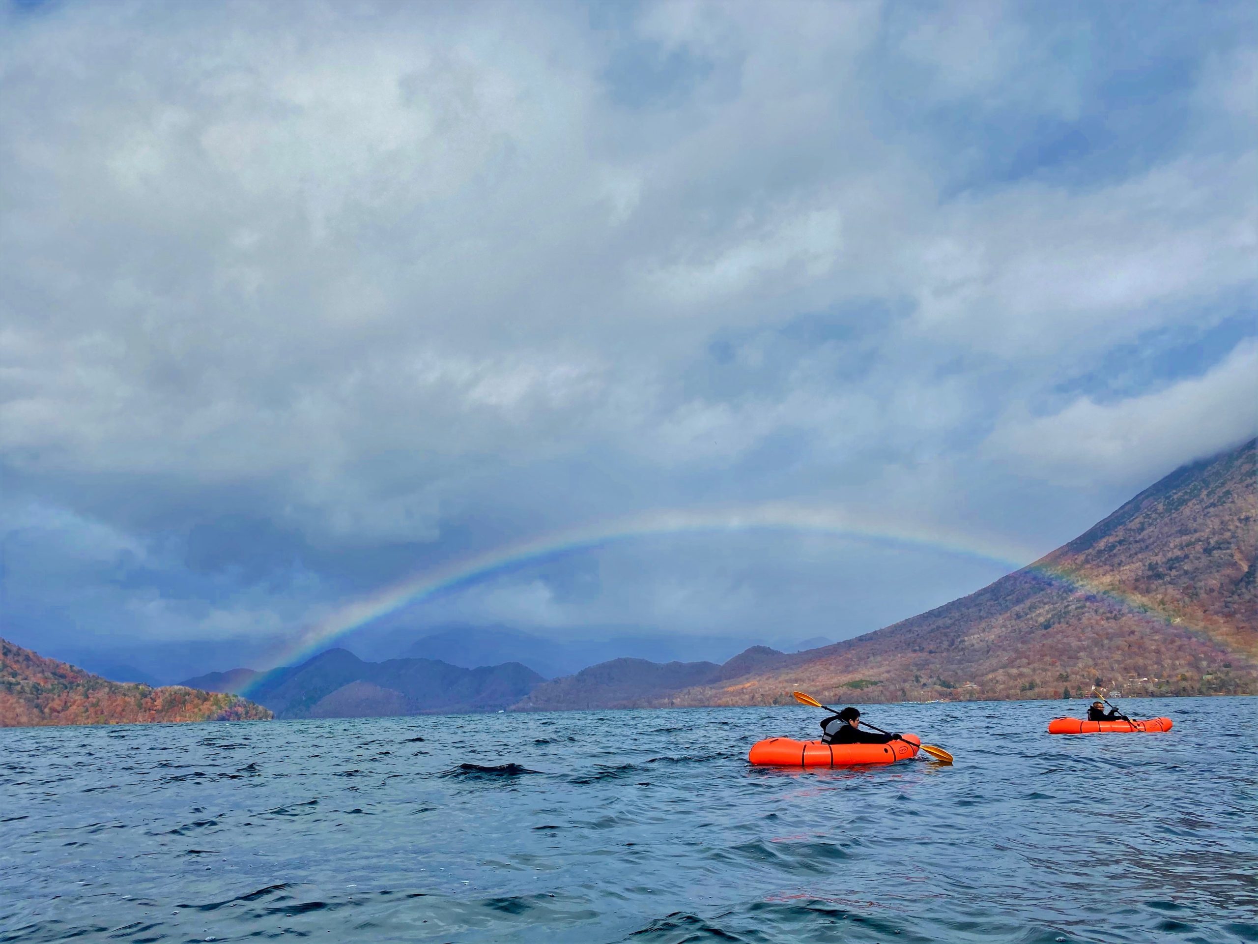 クライマックスは魚が泳ぐ澄んだ水のビーチから自分で膨らませたパックラフトにていざ中禅寺湖に漕ぎ出し、湖上から日光の大自然が生んだ山と湖の絶景をパドリングで楽しみ尽くします。