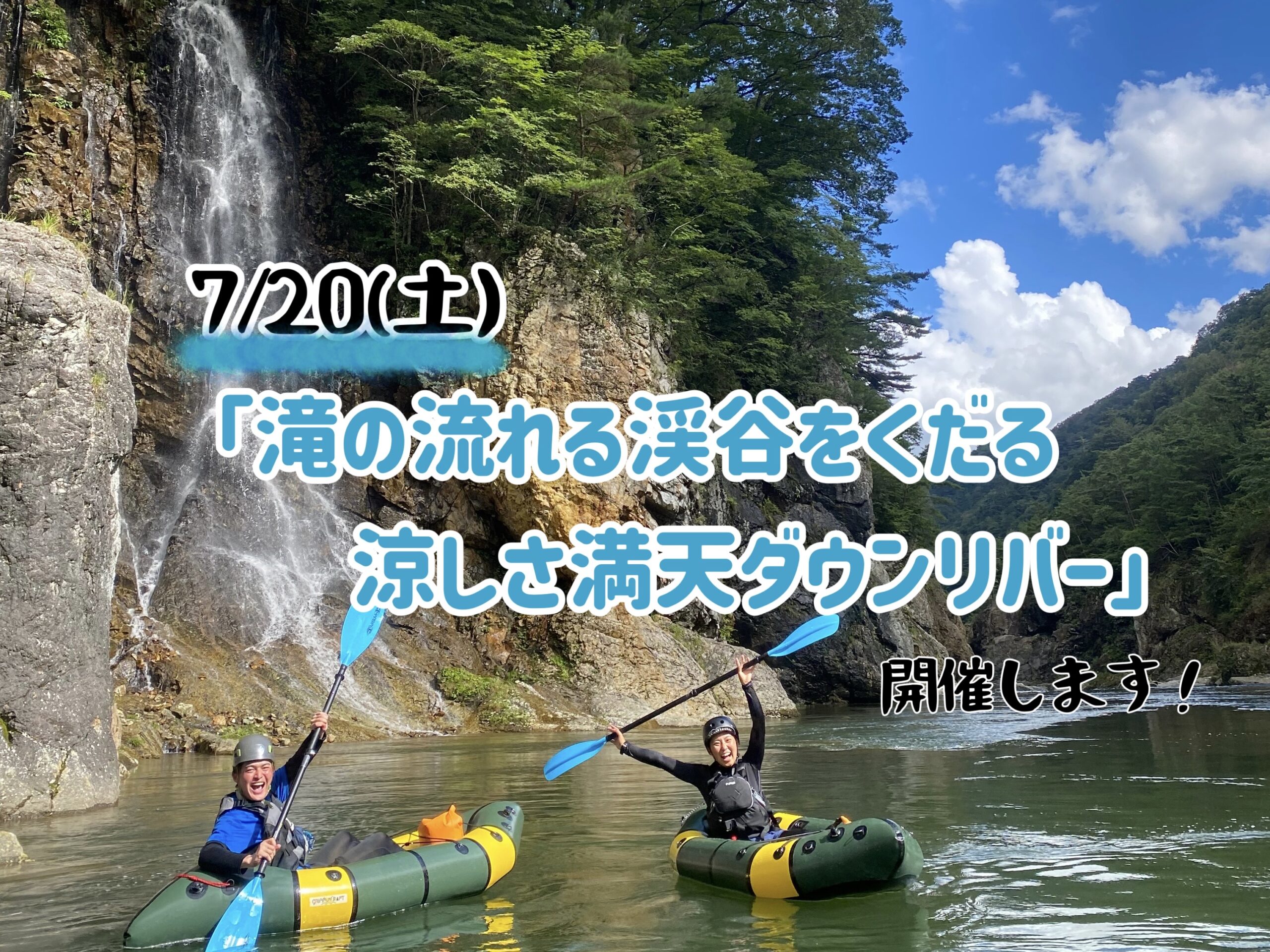 7月20日(土)「滝の流れる渓谷をくだる涼しさ満天ダウンリバー」イベント